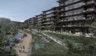 The project spans 20,770 m² and features 160 apartments across 13 blocks. The complex offers a variety of amenities including indoor and outdoor swimming pools, a restaurant, private gardens, indoor parking, 24/7 security, and surveillance cameras.