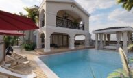 The villa offers 210 m² of modern interior living space, carefully redesigned with input from professional architects to ensure functionality and style. The ground floor includes a contemporary kitchen and living area, while the upper levels house 4 spacious bedrooms and 4 bathrooms, making it ideal for families or hosting guests.