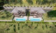 The 5-bedroom villas feature elegant, spacious interiors and are equipped with high-end finishes. Each villa boasts an en-suite bathroom for every bedroom, a beautifully landscaped garden with parking for 2 cars, an observation terrace, and an impressive 46 m² infinity pool. The outdoor spaces include a dedicated barbecue area for family and social gatherings.