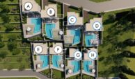 The project, which consists of 8 villas, features a spacious 436 m² landscaped garden with an infinity pool and BBQ area. The villas are equipped with luxurious amenities, including a sauna, Turkish bath, jacuzzi, and indoor heated pool, ensuring maximum comfort and relaxation.