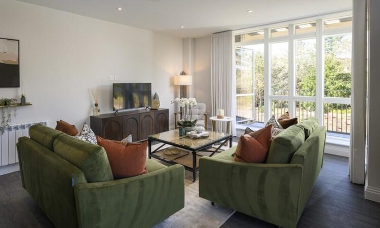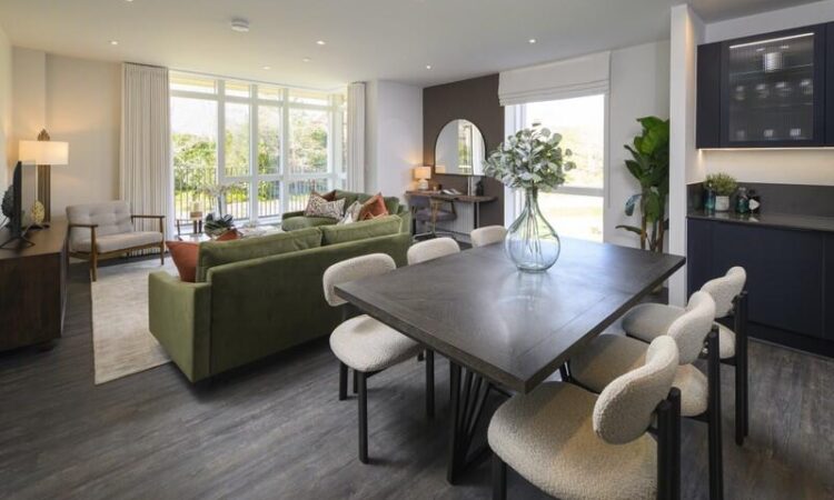 Discover modern elegance at this beautifully designed 3-bedroom apartment in the heart of Oakhill, Kent. Situated within a gated 30-acre estate, the home boasts an open-plan living and dining area that opens onto a sun-soaked terrace, perfect for morning coffee or evening relaxation. Residents enjoy views of landscaped gardens and tranquil ponds, creating a serene atmosphere.