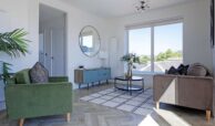 The interior of the penthouse is designed to maximise both functionality and style. Expansive open-plan living areas feature floor-to-ceiling windows that flood the space with natural light and frame stunning views of the surrounding skyline. High ceilings and elegant finishes create an atmosphere of understated sophistication, while the natural tones and textures used throughout the interiors bring warmth and harmony.