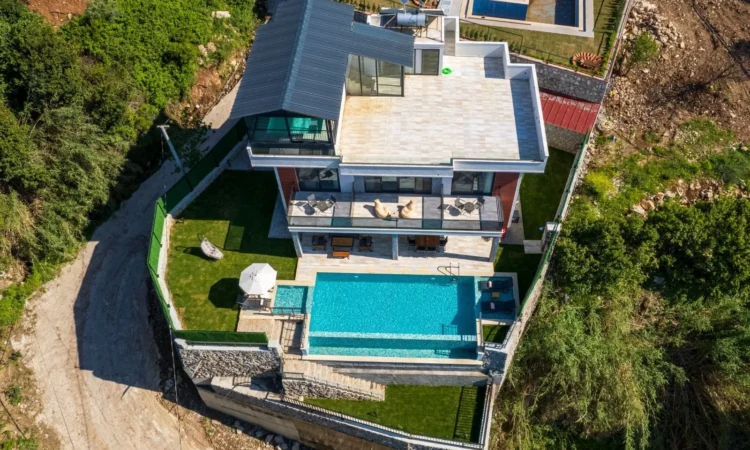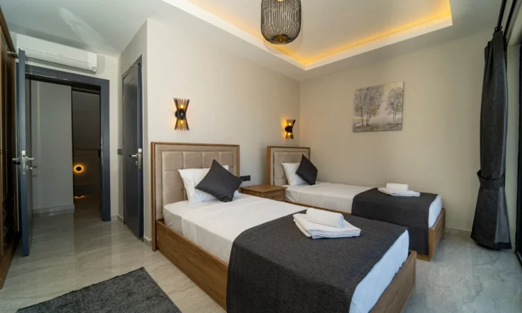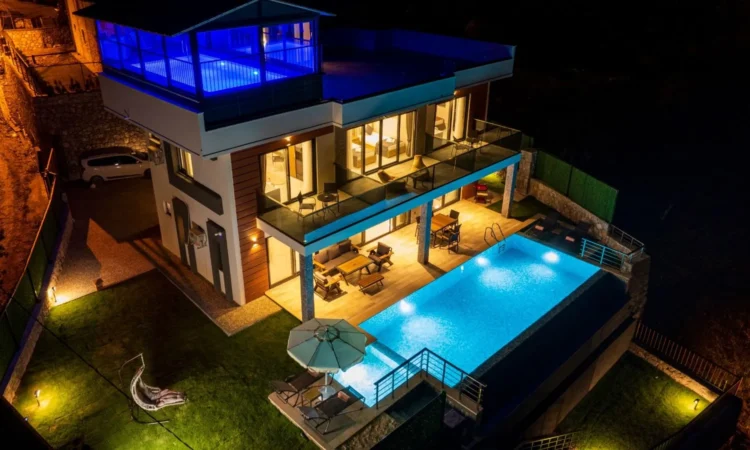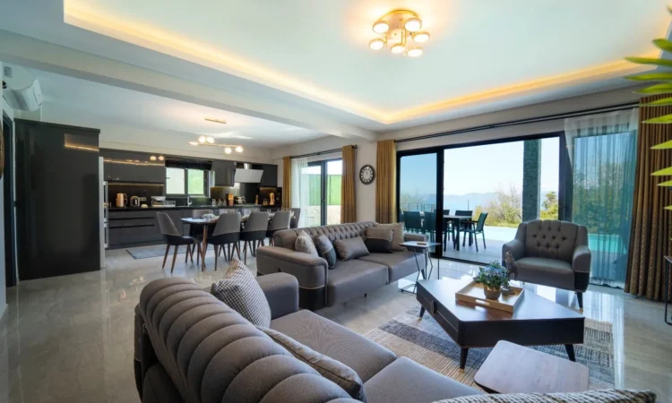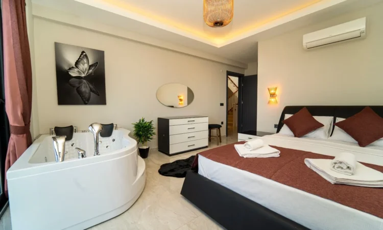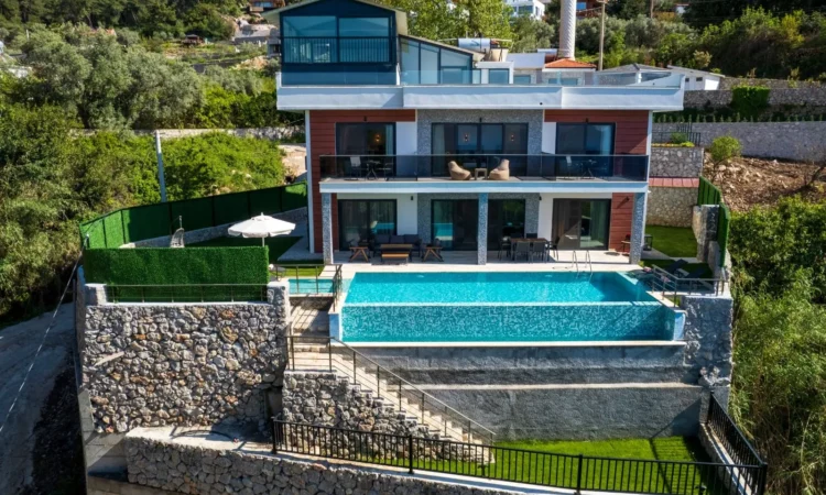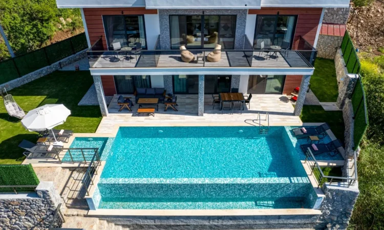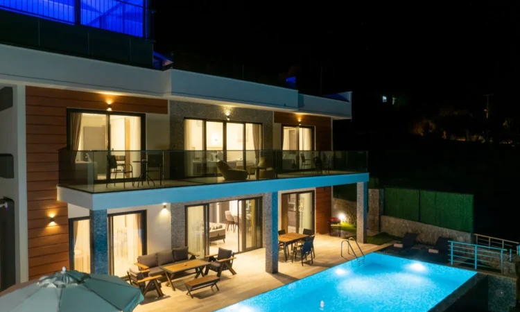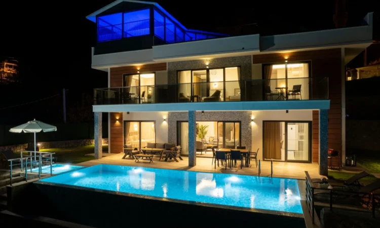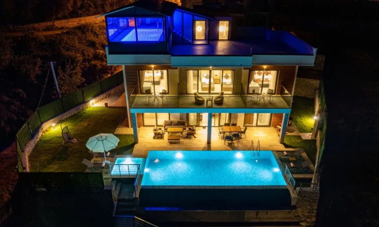 This luxurious villa in Faralya is just 1 km from the nearest beach, 4 km from the breathtaking Butterfly Valley, 9 km from the world-famous Ölüdeniz Beach, 18 km from Fethiye city center, 21 km from Fethiye State Hospital, and 59 km from Dalaman Airport.