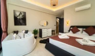 - Bedrooms: Each bedroom has its own en-suite bathroom, with two rooms offering additional luxury amenities such as a jacuzzi and a sauna.
