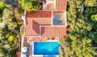 Situated on an 880 m² plot, the villa features a 300 m² main house, a 50 m² annex, a covered parking area, a sea-view infinity pool, and a spacious front porch.