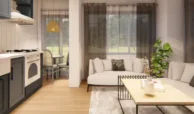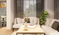 The apartments are equipped with steel exterior doors, shower cabins, central satellite systems, LED and spot lighting, laminate and ceramic flooring, natural gas, and central heating systems.