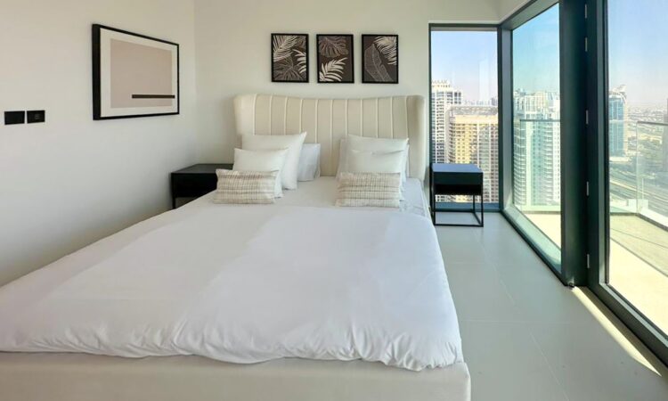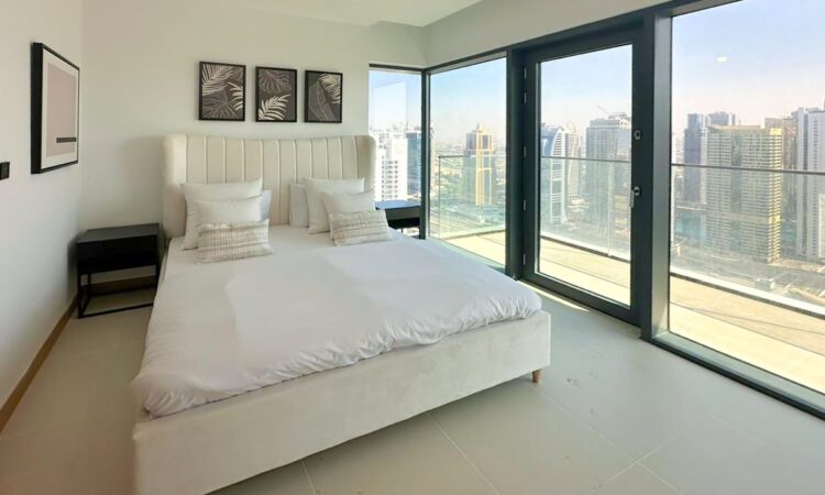 Step into a world of modern elegance as you enter the spacious and sunlit living area of this 1-bedroom apartment in Vida Residences, Dubai Marina, wake up to breathtaking views of the Dubai Marina of comfort