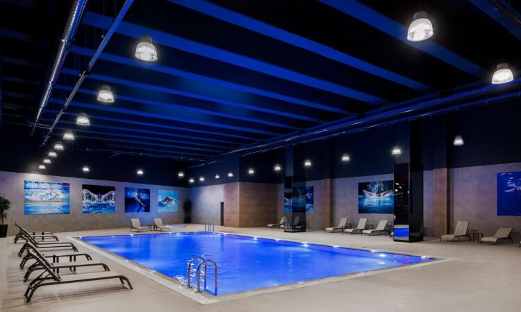 Spanning 23,842 m², the project consists of 7 blocks, each with 20 floors, totaling 227 apartments. The complex offers a wide range of amenities, including an indoor swimming pool, sauna, observation terrace, gym, indoor parking, meeting rooms, reception services, children’s playground, mini movie theater, laundry and pressing room, and 24/7 security with cameras.