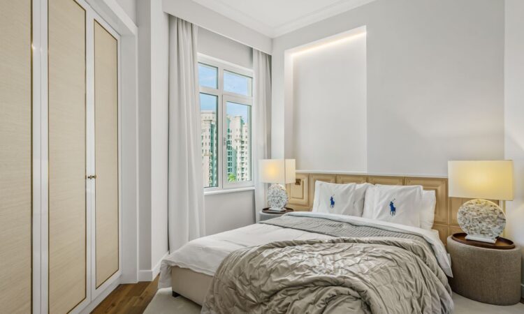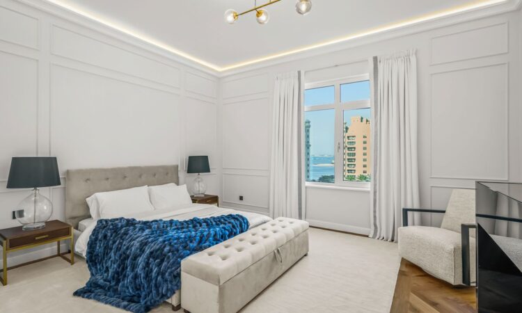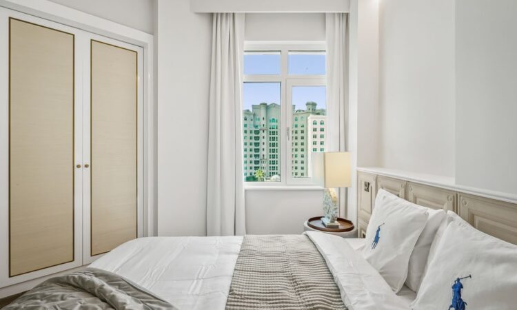 This 2-bedroom apartment in Al Anbara at Palm Jumeirah offers a serene coastal lifestyle with stunning sea views visible from the spacious balcony. The bright, open living area is enhanced by floor-to-ceiling windows, creating a vibrant, airy ambiance. The closed kitchen is well-equipped with quality finishes, perfect for preparing meals while maintaining a separate space. Both bedrooms are generously sized, featuring built-in wardrobes and en-suite bathrooms for privacy and convenience. Al Anbara is part of the Shoreline Apartments on Palm Jumeirah, providing residents with a blend of luxury and tranquility.