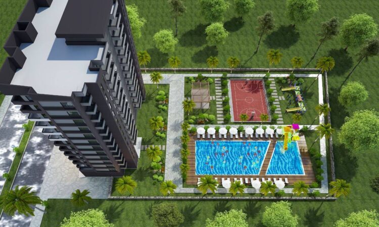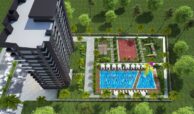 This modern residential complex consists of a single 12-story block, offering a range of amenities such as a swimming pool, basketball court, chill-out areas, café, walking trails, BBQ areas, parking lot, generator, intercom system, security cameras, and a lift for ultimate convenience and comfort.