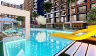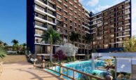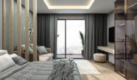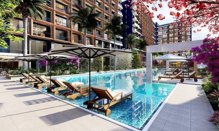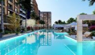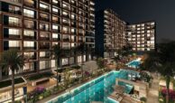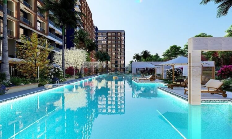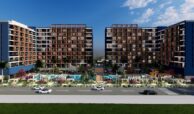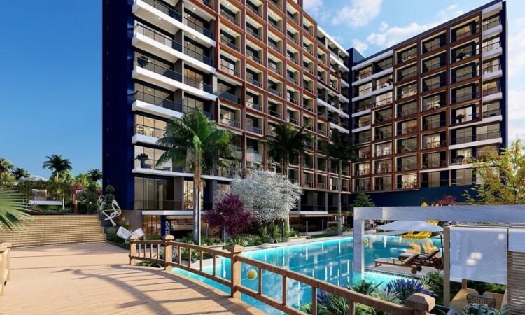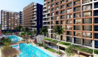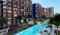 Set on a 7,078 m² plot, the hotel concept project consists of two blocks with a total of 477 apartments. Available apartment types include studio, 1-bedroom, 1-bedroom duplex, and 2-bedroom duplex options. The complex offers a wide range of amenities, including a swimming pool, aquapark, outdoor parking, electrical charging stations, shuttle service, an A’la Carte restaurant, room service, reception, laundry, cafe, market, hairdresser, children’s playground, billiard, PlayStation, cinema salon, gym, Turkish bath, BBQ areas, and gazebos. Residents also benefit from a smart lift system, security cameras, and 24/7 security services.