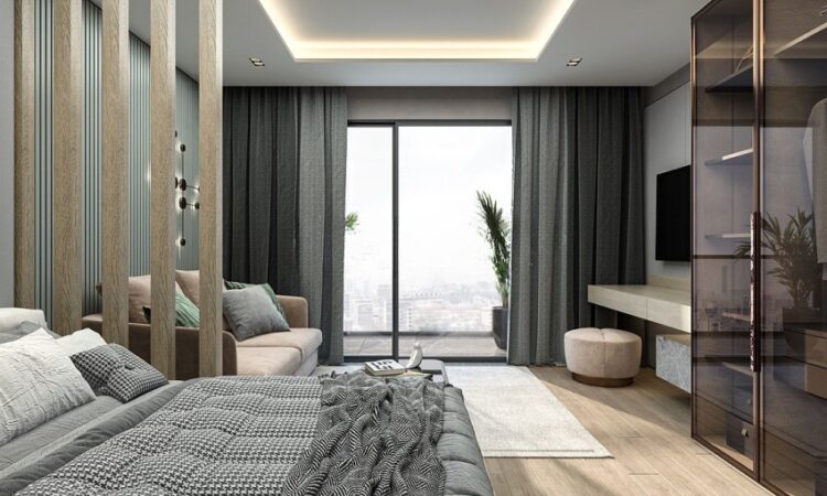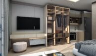 These chic apartments come with a furnishing package that includes an electrical stove, bed, TV unit, wardrobe, desk, cloakroom, and kitchen and bathroom cabinets, providing everything needed for modern living.