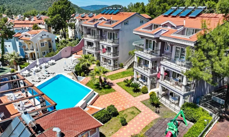 This hotel, centrally located in Fethiye, presents an exceptional opportunity for investors and hospitality operators. Comprised of two blocks, the hotel features 16 modern one-bedroom open-plan apartments, each designed to provide a complete living space with an open-plan kitchen, living area, bathroom, balcony, and bedroom. There is ample potential to expand the property’s capacity to 35 units by utilizing unused spaces.