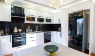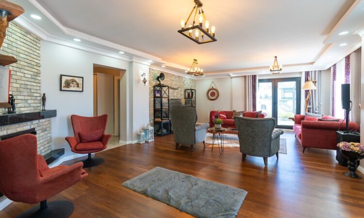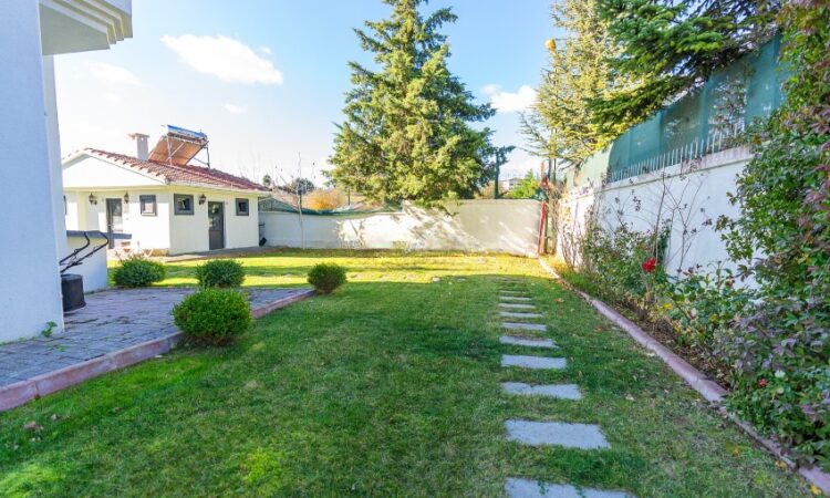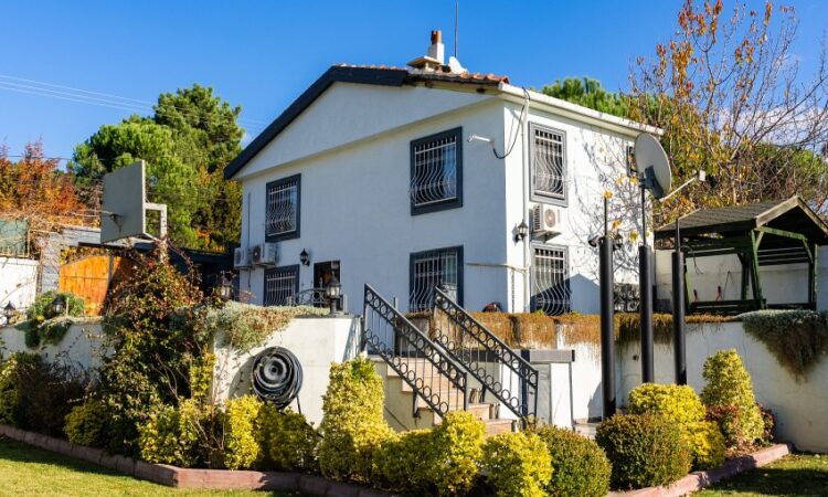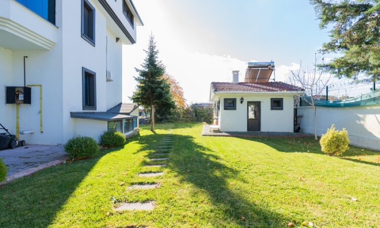 The triplex main villa offers 6 bedrooms, 5 bathrooms, an enclosed balcony, 2 terraces, and a winter garden. It also includes a veranda, a main kitchen on the entrance floor, and provisions for a second kitchen on the top floor. The villa is equipped with a fireplace, built-in kitchen appliances, laminated and ceramic flooring, steel entry door, natural gas, and PVC windows and balcony doors with fly screens. The basement level features 2 storage rooms and a hobby section. The property can be sold fully furnished with a separate offer for the furniture.