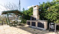 The property has been fully renovated and includes a variety of features such as a water tank, irrigation, lighting, alarm, and security camera systems. Enjoy the expansive outdoor space with a swimming pool, parking lot, gazebo, BBQ area, and a spacious garden with extensive agricultural land.
