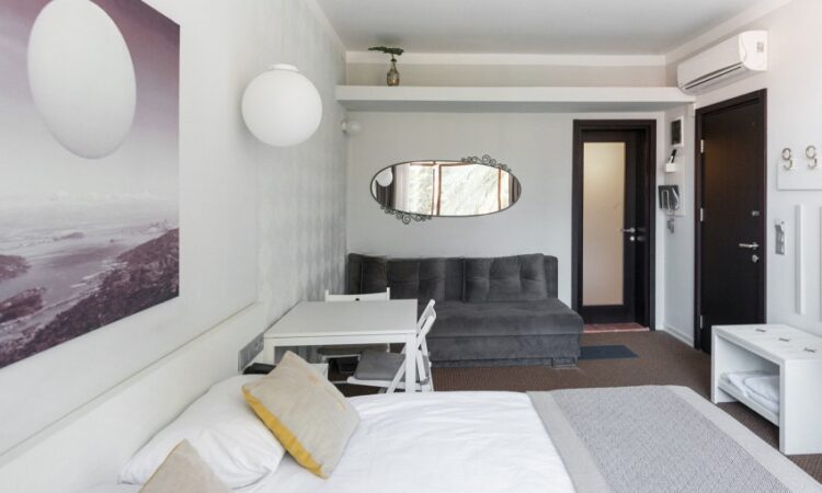 Furnished with modern amenities, the rooms come equipped with air conditioning, balconies, Wi-Fi, satellite TV, and solar heaters for comfort throughout the year.