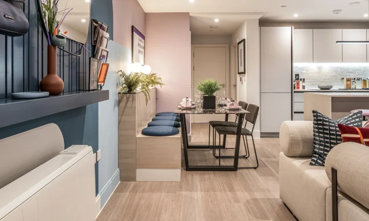 These beautifully crafted 2-bedroom apartments in Slough offer an elegant blend of style and practicality. Designed for modern living, each home features open-plan layouts, high-specification kitchens, and private outdoor spaces. Residents enjoy exclusive access to premium facilities, including a fully equipped gym, cinema room, co-working spaces, and a rooftop terrace.