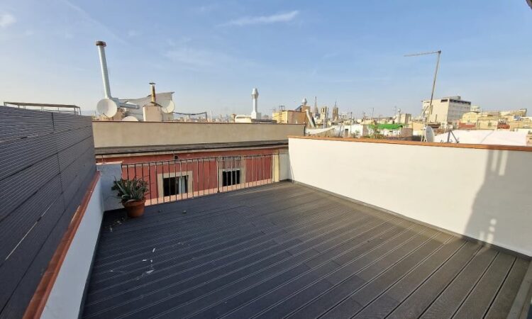 The penthouse offers an expansive 81 m² terrace, providing stunning views of the Barrio Gótico. The terrace covers the entire building surface and is equipped with installations for a kitchen and bathroom, perfect for outdoor living and entertaining.