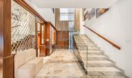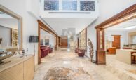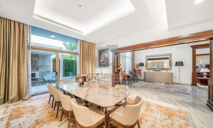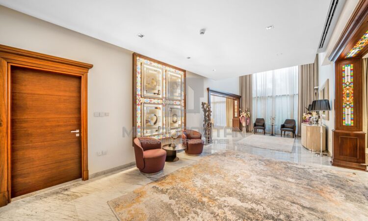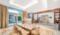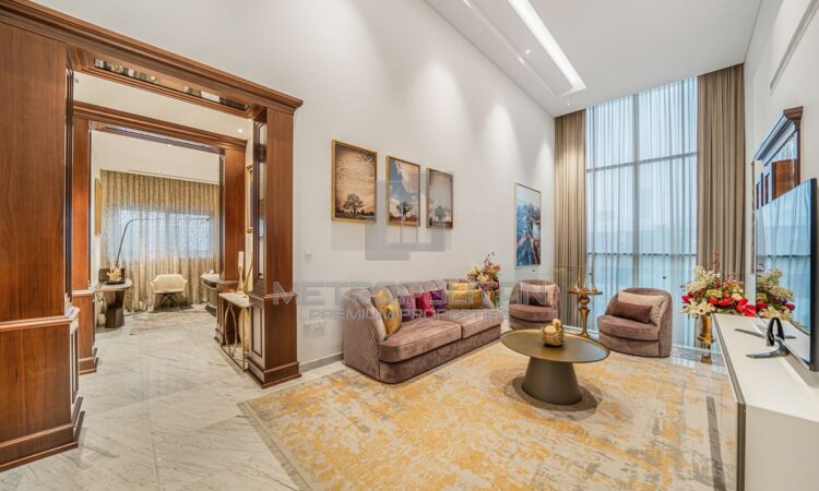 This super grandeur villa is fully upgraded and fully furnished. From the entrance of the villa, it shows elegance with the design and fixtures. There is outdoor seating, a landscaped garden, and its own private pool. Inside is an extra spacious living space decorated with luxury interiors and furniture.