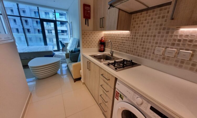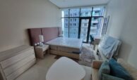 Enter this stylish studio to find an open living area that seamlessly integrates with a sleek, fully equipped kitchen. Large windows flood the space with natural light, offering breathtaking sea views. The sleeping area is cleverly designed for privacy, while the bathroom boasts contemporary fixtures and finishes.