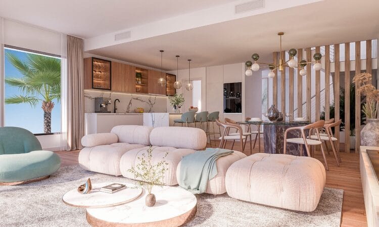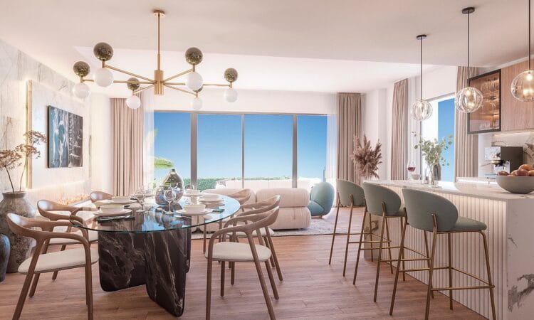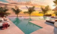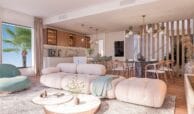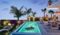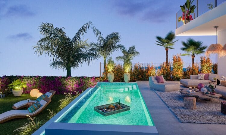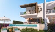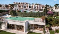 These sophisticated townhouses blend traditional Andalusian style with modern comforts, emphasizing a laid-back Mediterranean lifestyle. On-site amenities in this gated development include large swimming pools with sea and golf course views, a sun deck, BBQ and leisure areas, landscaped gardens, a fully equipped gym, a wellness area with sauna and Turkish bath, and a social club with a co-working space.