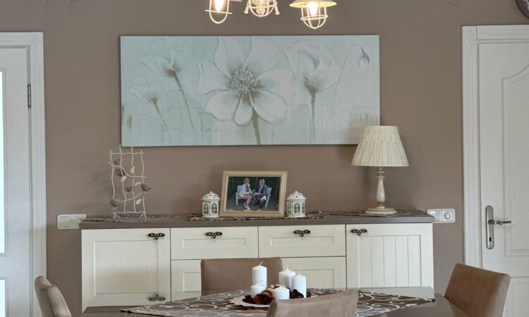 The villa features a spacious living room, an American-style kitchen, and two bathrooms. Enjoy outdoor living with a private pool, a well-maintained garden, and a generous terrace ideal for relaxation and entertaining. Inside, you’ll find a cozy fireplace, a dedicated cinema room for movie nights, and a fully equipped gym for fitness enthusiasts.