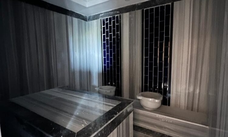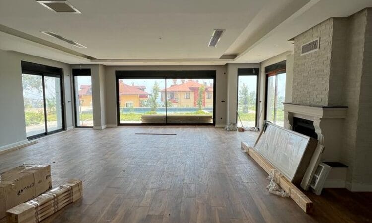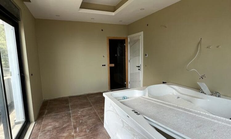 The villa spans three floors and features five bedrooms, two living rooms with a fireplace, and four bathrooms. The American-style kitchen is complemented by a balcony, dressing room, and terrace. Enjoy underfloor heating and air conditioning throughout the home. The property also includes a private pool, garden, jacuzzi, sauna, Turkish bath, and BBQ area, perfect for relaxation and entertaining.