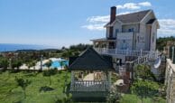 The villa offers a comfortable living environment with 2 living rooms, an American kitchen, and air conditioning throughout. Enjoy the warmth of a fireplace and take in magnificent sea, mountain, and town views from the private balcony and terrace. The property also boasts a private pool, a beautifully landscaped garden, and a BBQ area for outdoor entertaining.