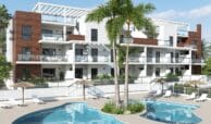 The properties are part of the initial phase of a residential complex, consisting of 27 duplexes featuring 2 or 3 bedrooms and 2 bathrooms. Within the complex, residents can enjoy a spacious courtyard, boasting two communal swimming pools and a playground area.