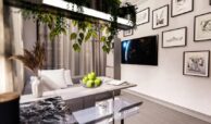 The apartments feature steel exterior doors, shower cabins, TV satellite systems, spot and LED lighting, ceramic-coated floors, gas combi systems, and underfloor heating, ensuring a comfortable and modern living space.