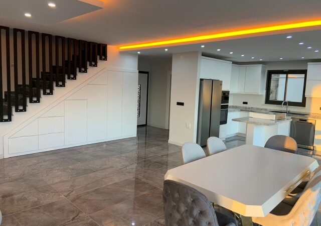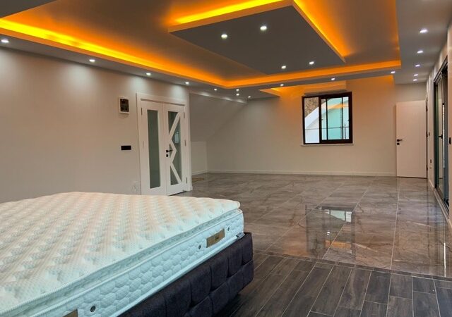 This luxurious 4-bedroom villa, located in the sought-after Kargicak area of Alanya, offers 350 m² of elegant living space set on a 500 m² plot. Completed in 2023, this villa features 4 bathrooms, 1 spacious living room, and a modern American kitchen. The villa is fully furnished (optional) and equipped with high-end finishes, including air conditioning and energy-efficient windows, ensuring comfort and sophistication.