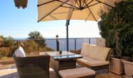The villa offers stunning sea, mountain, and town views from its balcony and terrace, creating a tranquil environment. The private pool, private garden, BBQ area, and parking area enhance the outdoor living experience. Additionally, the villa includes a sauna, making it an ideal retreat.