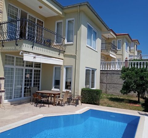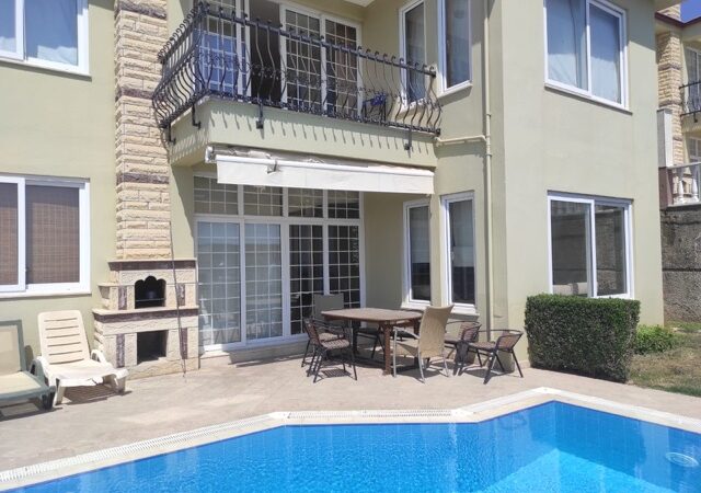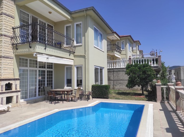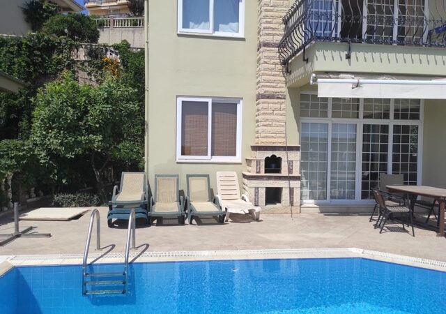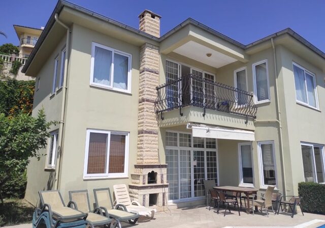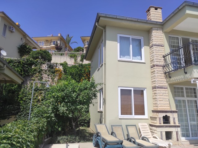 This charming villa for sale in Kargicak, Alanya, offers 280 m² of comfortable living space, set on a 450 m² plot. Built in 2010, the villa spans two floors and features 3 bedrooms, 2 bathrooms, and a spacious living room. The villa is fully furnished, with an American-style kitchen, air conditioning, and a CCTV alert system for added security.