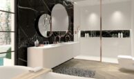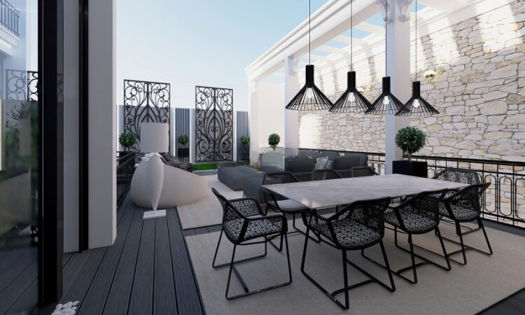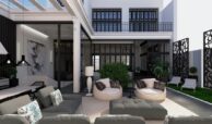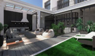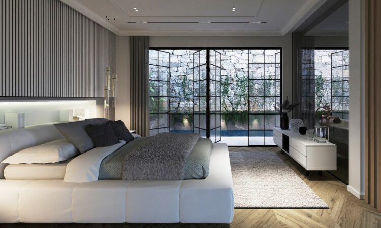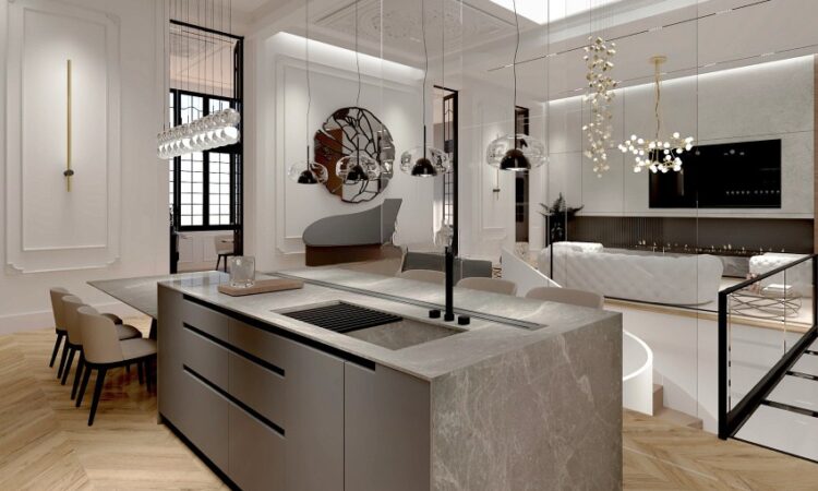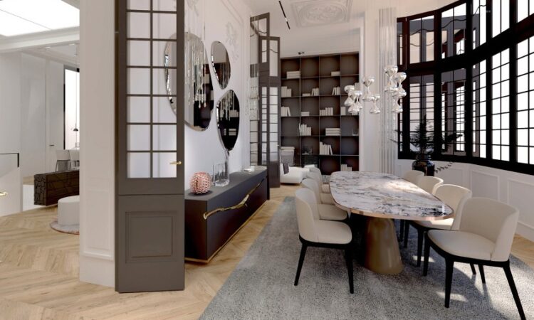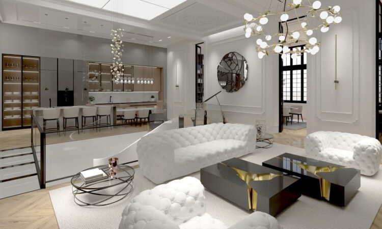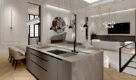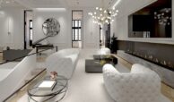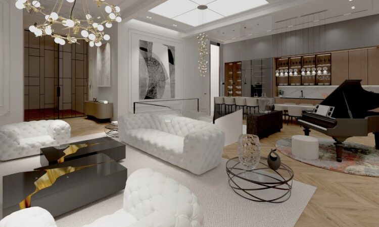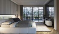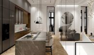 Inside, the apartment boasts an open-plan kitchen equipped with premium built-in appliances, a spacious living room, and a dining area perfect for entertaining. Each bedroom comes with an en-suite bathroom, while additional features include a dressing room, a library, and Italian-designed furniture. The apartment is also equipped with advanced lighting systems, adding a modern touch to its elegant design.