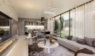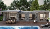 The single-storey villas offer exceptional sea and nature views, featuring 5 bedrooms, a spacious living room, an open-plan kitchen, and 5 bathrooms. Additionally, each villa includes a dedicated outbuilding room. High-end features such as underfloor heating, a cozy fireplace, and a central VRF air conditioning system ensure a comfortable living environment year-round.