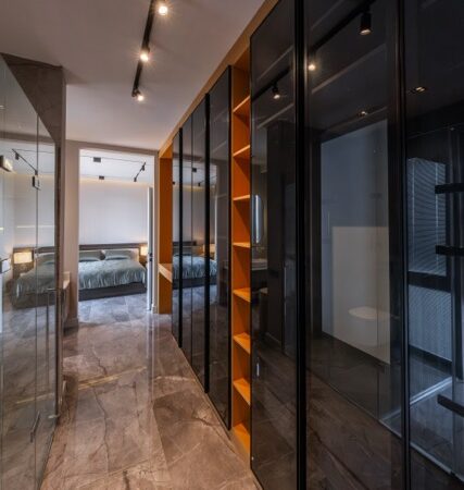 - Elegant interiors: Custom-made cabinets and wardrobes in all rooms, designed with reflective glass and premium materials.