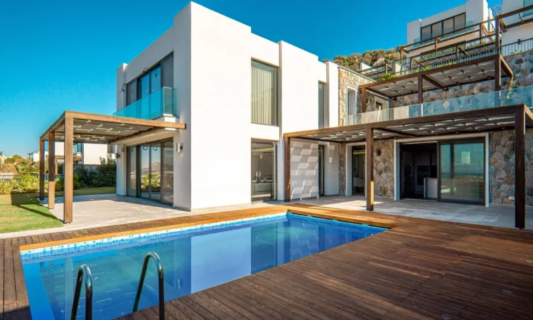 Each home comes with its own private garden, swimming pool, and veranda, perfect for enjoying the stunning surroundings. The property also includes parking for two vehicles and an electric vehicle charger. The homes are equipped with underfloor heating, a VFR A/C system, and high-end finishes throughout, providing a luxurious living experience in one of the most desirable areas of Bodrum.
