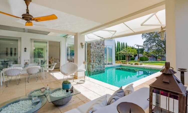 Designed with multiple independent living sections, the villa offers flexibility and privacy, including a separate guest house with 1 bedroom and 1 bathroom, as well as an outbuilding with a living room, 1 bedroom, and 1 bathroom.