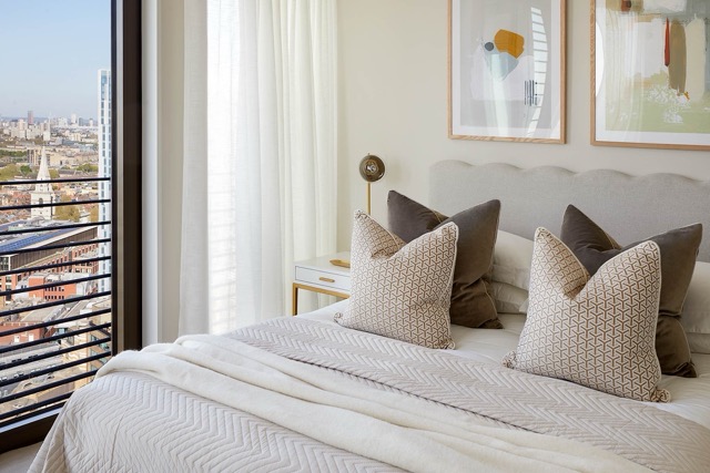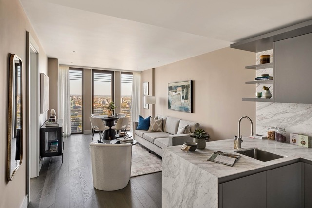 Each one, two, and three-bedroom apartment features floor-to-ceiling windows, allowing for spectacular views of The Shard, The Gherkin, Tower Bridge, and Canary Wharf. Elegant interiors, premium finishes, and seamless open-plan layouts ensure a refined living experience.