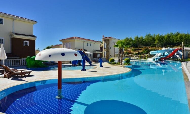 Residents also have access to a range of shared amenities, including a common pool, indoor pool, children’s pool, children’s park, aqua park, spa, fitness center, football and basketball courts, tennis court, hairdresser, market, and 24/7 security.