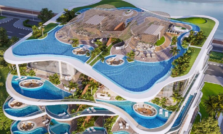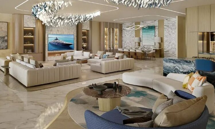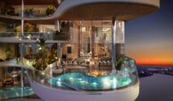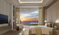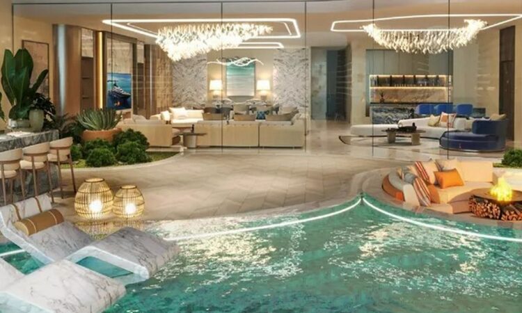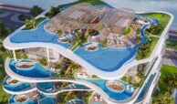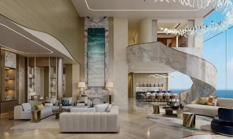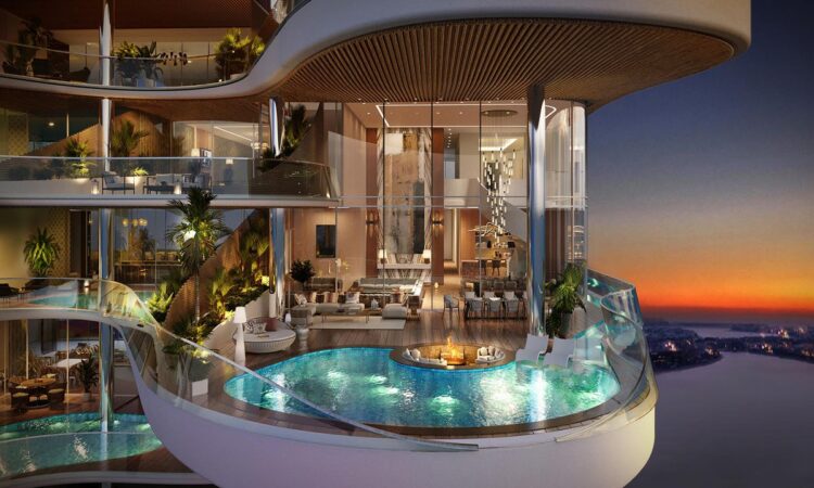 Thanks to curved exterior holding pools and green areas, the suite will boast wave-like integrated architectural characteristics. The unit will come with two kinds of kitchens, outdoor dining and seating areas, a teppanyaki station, a laundry room, a private elevator, and much more.