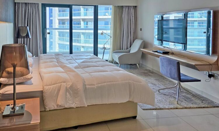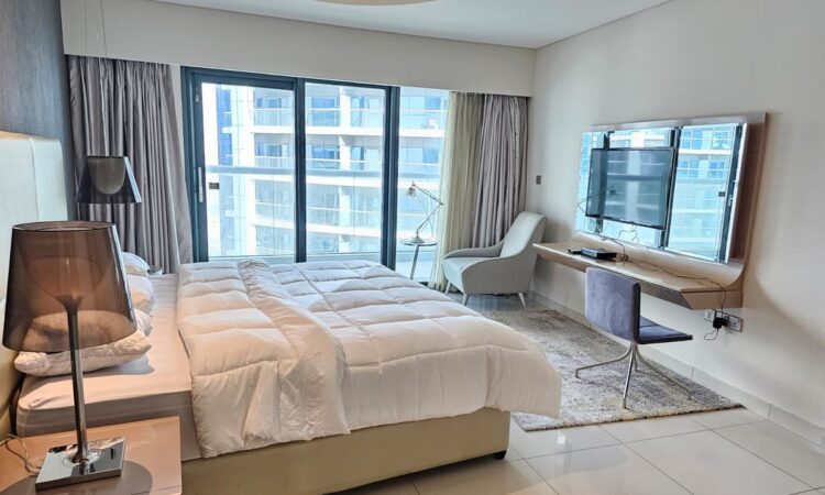 Step into this luxurious 1-bedroom apartment in DAMAC Towers by Paramount at Business Bay. The living area is adorned with high-end furnishings and floor-to-ceiling windows, bathing the space in natural light. The bedroom offers built-in wardrobes and a serene ambiance, while the bathroom is sleek and contemporary. Enjoy city views from the private balcony, perfect for unwinding. Central air conditioning and high-speed internet ensure comfort and connectivity.