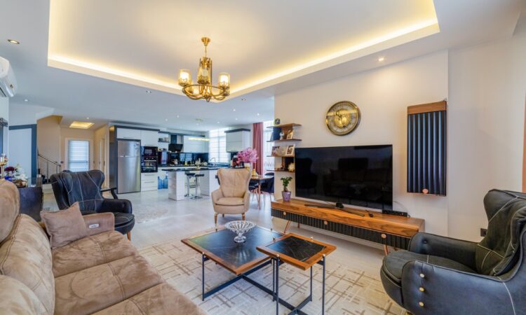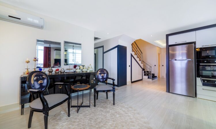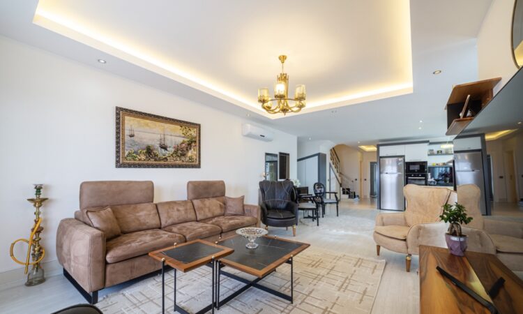 Located on the 9th floor with rooftop access, this spacious 201 m² 3-bedroom duplex offers a comfortable and stylish living space in the heart of Tosmur, Alanya. The apartment comes fully furnished and is situated in a well-maintained residential block, ideal for those seeking a move-in-ready home.