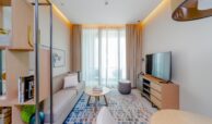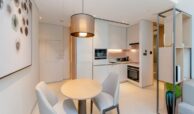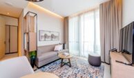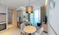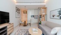 This elegant 1-bedroom apartment in Jumeirah Gate Tower 2 offers modern luxury in a prime beachfront setting. The open-plan living and dining area is bright and spacious, thanks to large floor-to-ceiling windows that lead to a private balcony with stunning sea views. The kitchen is fully equipped with top-quality appliances and sleek cabinetry. The bedroom features built-in wardrobes and an en-suite bathroom with contemporary finishes. The overall design is stylish, offering both comfort and sophistication, perfect for beachside living