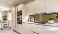 Upstairs, three spacious double bedrooms include a master suite with fitted wardrobes and an en-suite bathroom. Stylish finishes like underfloor heating, ceramic wall tiles, and a contemporary family bathroom enhance the home’s appeal. A private driveway, garage, and two parking spaces provide convenient storage and vehicle access.