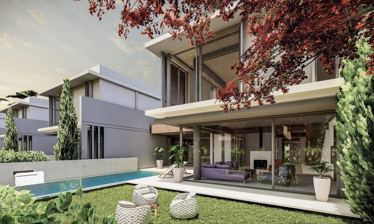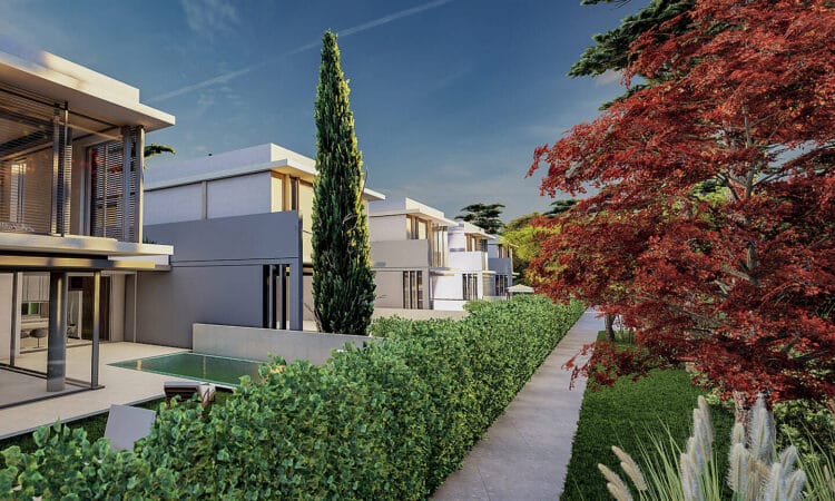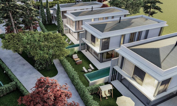 The project spans a 19,043 sqm plot and includes 42 detached villas. Each villa boasts stylish, well-maintained gardens, walking paths, gazebos, an irrigation system, a generator, an indoor parking lot for 2 vehicles, fire extinguishing systems, a children’s playground, ventilation systems, water treatment systems, a fitness center, a SPA, a Turkish bath, a site attendant, a cafeteria, and a 24/7 camera system for security.