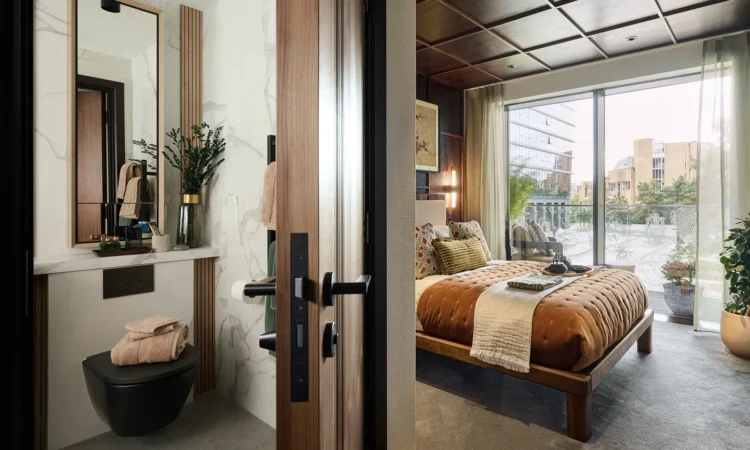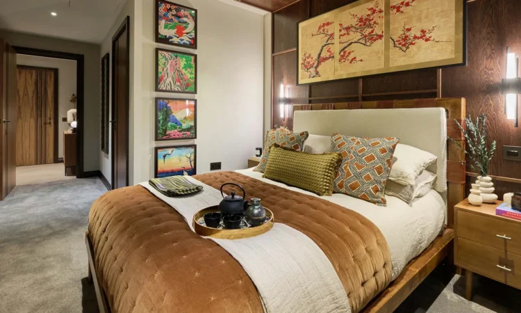 The master bedroom boasts ample space, built-in wardrobes, and a luxuriously appointed en-suite bathroom with high-end fixtures. The second bedroom is equally well-sized, making it ideal for guests, a home office, or additional living space. A second family bathroom complements the apartment’s layout, finished to the highest standard with elegant materials.