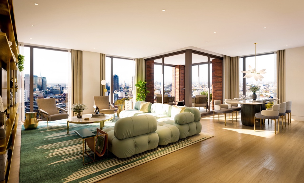 This 3 bedroom penthouse in London, Shoreditch defines contemporary urban living. Set on the 21st floor, it offers spectacular panoramic views over London’s skyline, from the City to Islington. With 1,837 sq ft (170.66 sq m) of interior space, this residence combines sophistication, comfort, and modern design.