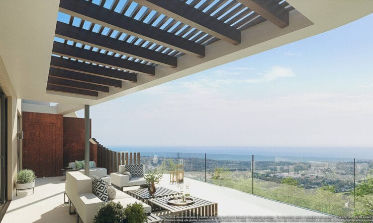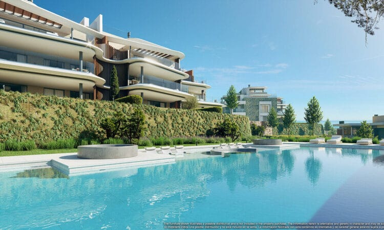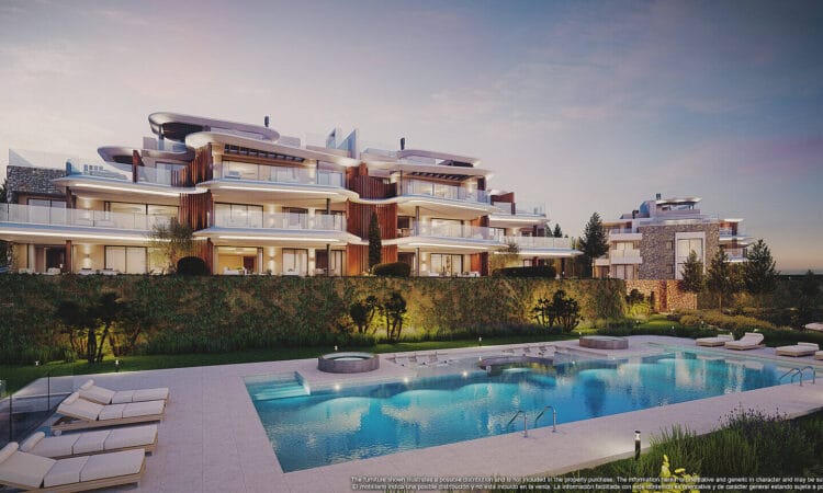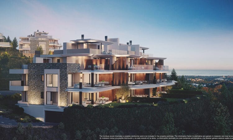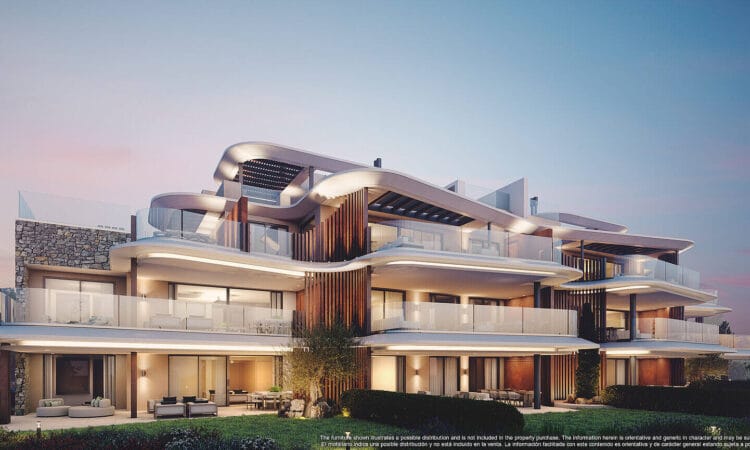 These energy-efficient apartments are located in a prestigious complex only minutes from the beach, 15 minutes from Puerto Banus, 45 minutes from Malaga Airport, and approximately an hour from Malaga city center.