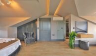 - First Floor: Comprises one double bedroom and two single bedrooms. The double bedroom includes a bed, makeup table, bedside tables, a jacuzzi, wardrobe, air conditioning, a private bathroom, and a balcony. The single bedrooms are furnished with beds, wardrobes, TVs, bedside tables, air conditioning, and private bathrooms.